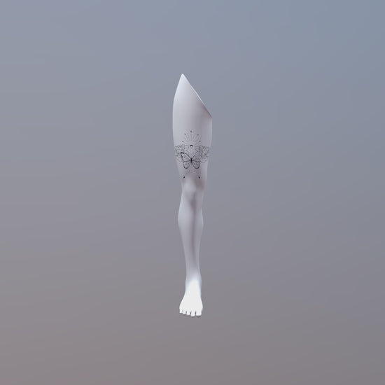 Dieses kunstvolle Tattoo-Motiv vereint einen eleganten Schmetterling mit zwei detailreichen Blüten und geometrischen Elementen. Es symbolisiert Transformation, Freiheit und natürliche Schönheit – perfekt für alle, die Wachstum und Veränderung zelebrieren möchten.